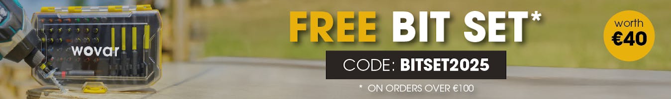 Receive a free 41-piece Impact Bit Set worth €40 with any order over €100 when you use the code BITSET2025.